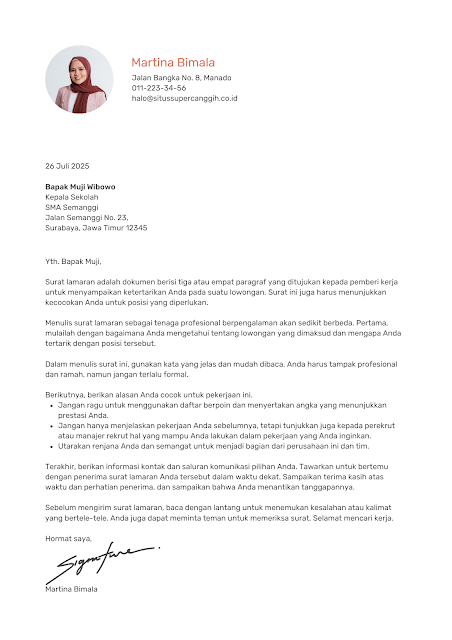 3. Contoh Surat Lamaran Kerja Guru Bahasa Inggris