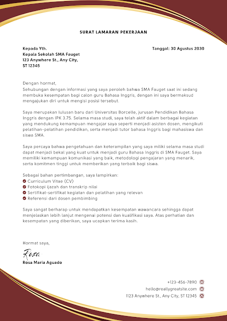 3. Contoh Surat Lamaran Kerja Guru Bahasa Inggris