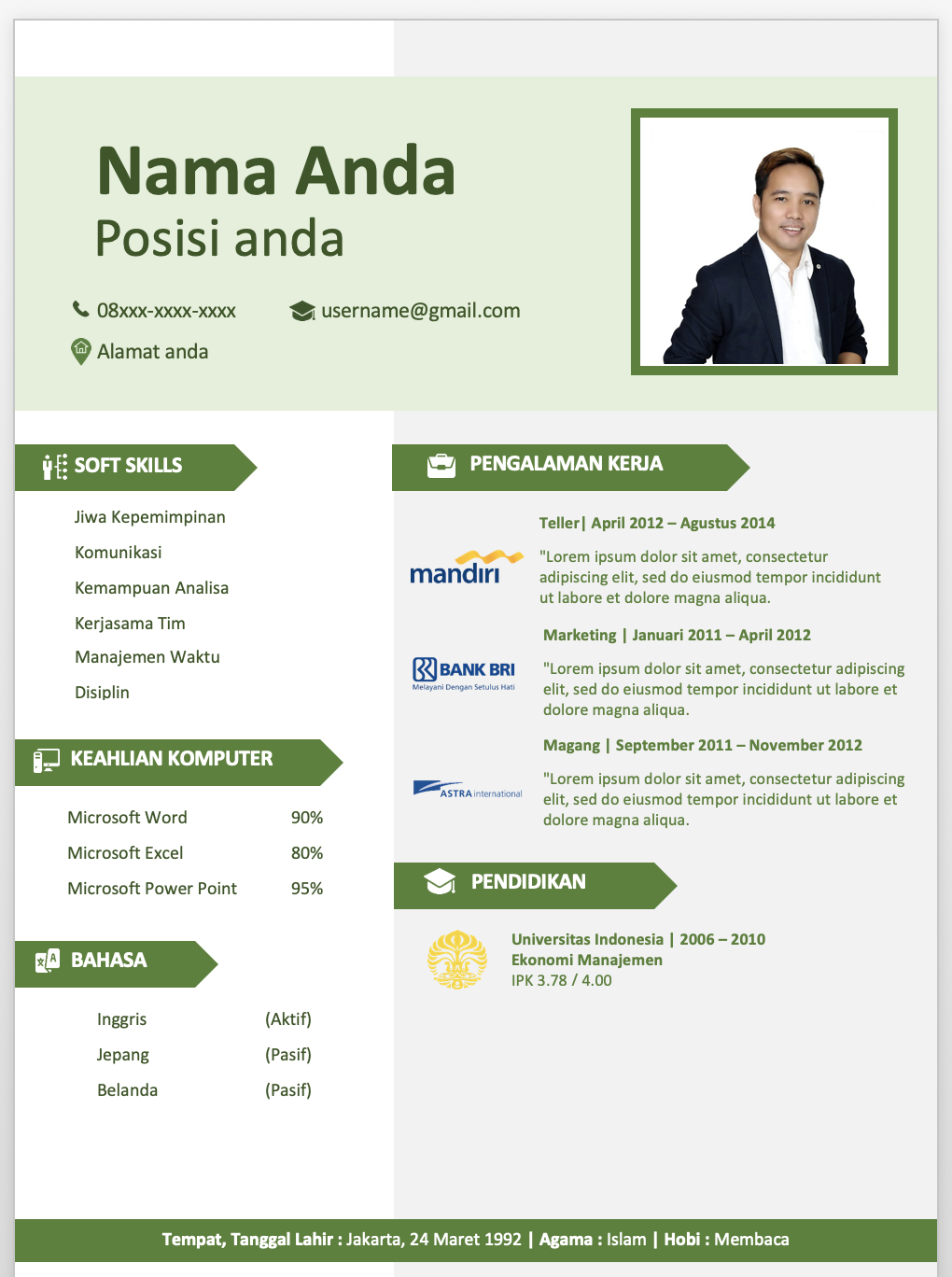 CV BUMN Contoh 3 | Contoh CV BUMN yang dirancang khusus untuk fresh graduate |