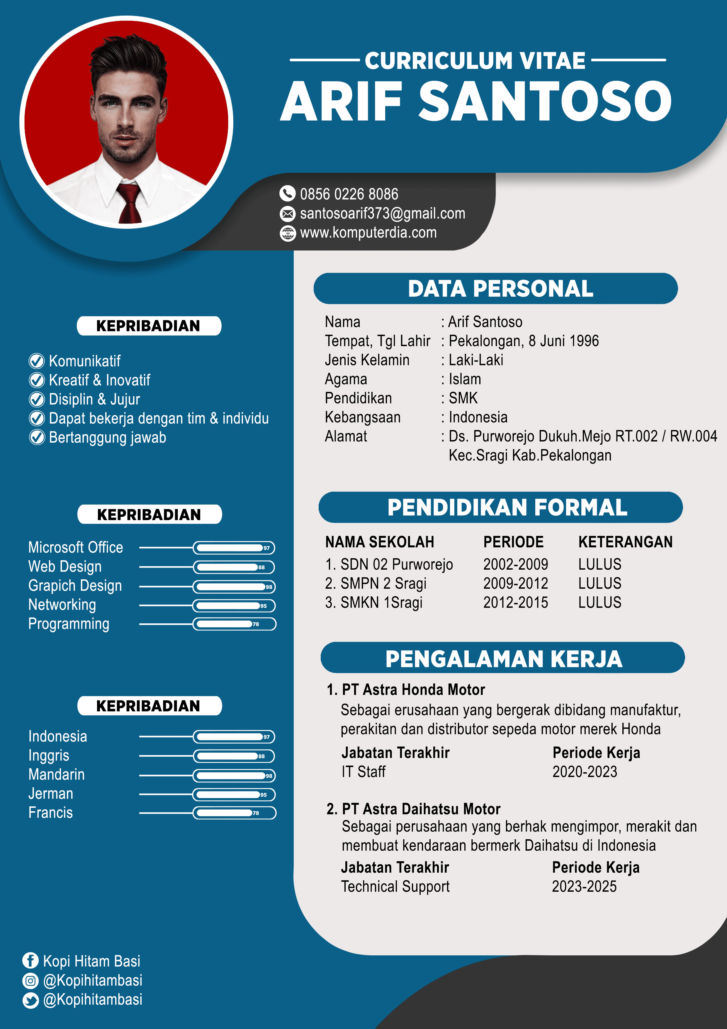 CV BUMN Contoh 2 | Contoh CV BUMN yang menonjolkan keterampilan komunikasi dan kepemimpinan |